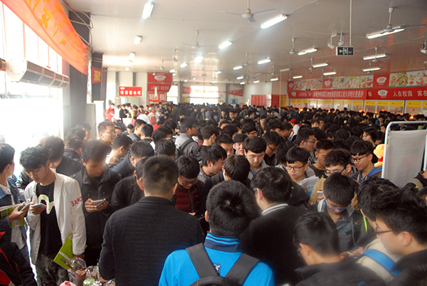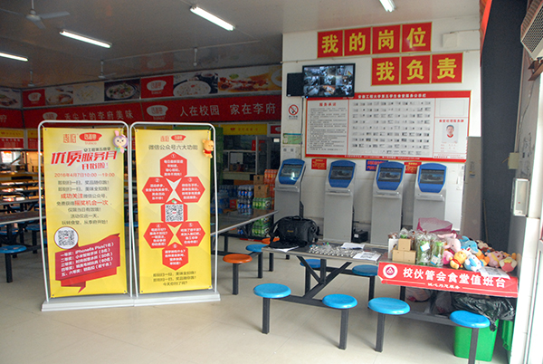 2016年4月7日上午9时许,以“传香客安徽工程大学第五食堂优质服务月”为主题的李府集团官方微信公众号推广活动在安徽工程大学第五食堂拉开帷幕。本次活动持续一天,集团事业部总监张超、技术部总监王士超、总经办副主任梁灿携办公室、网络部、财务部相关人员前往食堂现场,详细耐心的为就餐师生讲解关注方式、抽奖流程及微信公众号的相关功能。据后台数据统计,当天有接近3000名师生关注了我集团微信公众号。