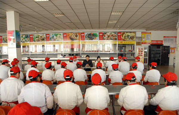 在食堂员工大会上,谷总助与基层员工面对面交流,听取员工诉求,共同分析工作中发现的难点、要点,并讨论解决办法。他表示,员工大会是大家工作经验交流的重要平台,食堂管理人员要对会议高度重视。要鼓励员工多总结,多思考,多发言,多讨论,每一份创新的火花、绩效的提高大多来自战斗在一线的基层员工。谷总助同时希望,大家要充分理解公司宗旨——“质量卫生安全求生存,主动服务创新求发展”的深刻含义,将字面意思切实落实到实际工作中去,为明年的工作统一提高思想认识高度。