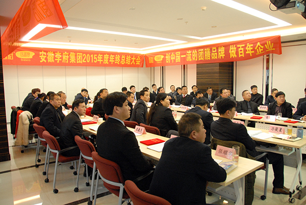 大雪纷飞,瑞雪丰年好兆头。2016年1月30-31日,安徽李府集团2015年终总结大会暨优秀管理者表彰大会在集团总部大会议室召开。集团董事长辛国芳出席会议并做重要讲话,集团公司各部门负责人、各食堂经理、副经理、厨师长、特邀员工代表等60余人参加了会议。大会由总经理助理兼总经办主任谷端主持。