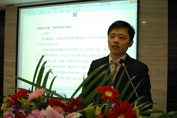 最后,总经理助理兼总经办主任谷端代表集团公司作了李府集团2015年年终工作总结与2016年工作计划的报告。谷总助首先代表辛董事长及集团公司对各级管理人员和全体员工为集团发展做出的辛勤努力表达了感谢。集团年终总结报告,全面展示了我集团公司2015年度取得的各项成绩:老食堂业务稳定增长,落地生根;新食堂业务迅速开拓,在江淮大地遍地开花;新投资项目启动在即,品牌实力再上新台阶;营业额再攀新高,顺利超越制定的目标任务。报告站在全局角度,深入指出了当前我们存在的关键性不足:人才梯队建设跟不上集团发展步骤;管理人员学习能力、学习主动性有待提高,执行力偏弱;公司整体营销工作有待加强,技术研发工作尚处于起步阶段···针对以上问题,报告从战略角度出发,系统性的对2016年工作作出了周密的部署与安排,包括人才引进与应用,制度落实与监督,市场营销与成本控制,企业文化建设等。谷主任要求,各部门、各食堂、各级管理人员要深刻领会报告精神,紧扣辛董提出的“稳增长,控成本,建团队,强管理,抓效益”的集团发展总基调,全面开展新的一年特别是新的学期的工作。