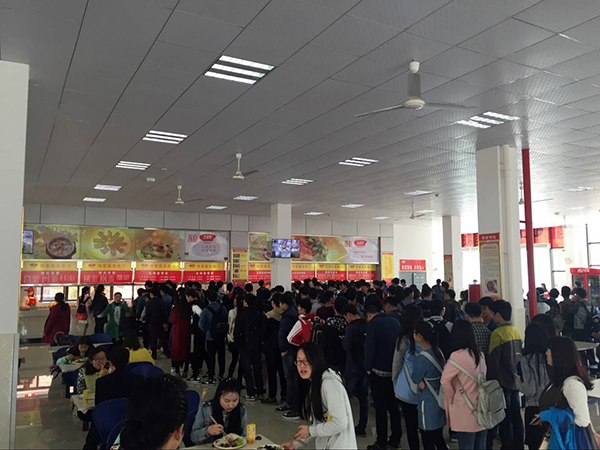 当日中午,提前通过李府集团官方微信平台、校方通知等渠道得知开业消息的约1200名师生来到舒适温馨的新食堂井然有序的排队用餐。餐厅桌椅排列整齐,环境干净整洁,多媒体设备等一应俱全,李府集团也准备了多姿多彩的开业活动,师生就餐的同时,彼此之间不时交流食堂美食花色品种,整个食堂饭菜飘香、趣味盎然。