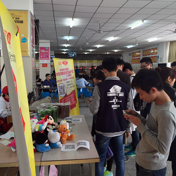 继26日安徽财贸职业学院李府传香客食堂微信公众号的顺利推广,我集团于2016年4月27日上午10时许在合肥学院第五食堂继续开展“优质服务月”微信推广活动。集团总经办副主任梁灿携办公室、网络部门工作人员前往现场指导工作,确保活动顺利进行并取得实效。据后台数据统计,当天有超过1000名师生关注了我集团微信公众号。