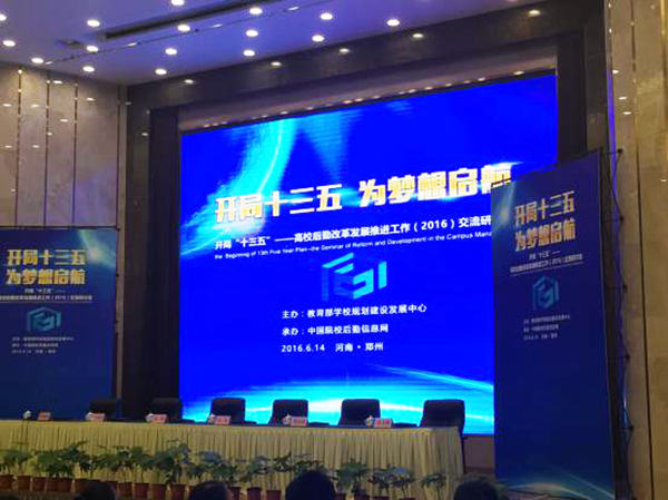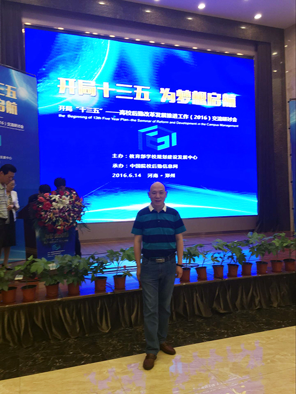 2016年6月14日,全国高校后勤改革发展推进工作交流研讨会在河南省郑州市召开。教育部学校规划建设发展中心主任陈锋、国家发改委体改司副司长周南等领导出席会议。教育部高校规划发展中心副主任邬国强主持会议,河南省教育厅副厅长尹洪斌在会上致辞。来自全国各省(区、市)400余所高校的830余名后勤相关工作的负责人参加了会议。辛国芳董事长作为中国教育后勤协会伙食专业委员会常务委员,安徽省高校后勤协会理事、餐饮专业委员会副主任应邀参加会议。