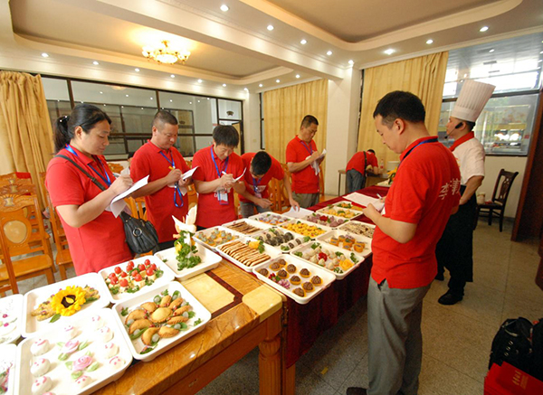 在下午举行的团膳烹饪技术理论教学中,两位讲师分别就面点和热菜的基本烹调方法做了细致的宣讲。在18:30分举行的理论考试中,经过认真仔细的阅卷评分,理论考试的冠军也从48名参考人员中脱颖而出,在随后有颁奖仪式中,培训班隆重的请到了辛董为所有的冠、亚、季军进行了颁奖表彰,他们分别是: