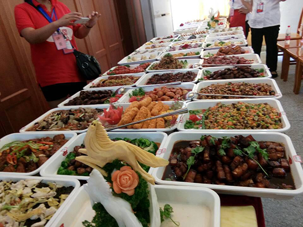王士朝总监就培训日程、培训规则,烹饪技术PK赛评比细则,做了宣读。首先分别进行的是洪晓春经理与王士朝总监的面点和热菜内容的实操教学,在接下来进行的团膳烹饪技术PK赛中,共有面点14人、热菜16人、面点团队5组、热菜团队5组,参与了烹饪技术比赛。PK赛在紧张有序的氛围中,热火朝天的展开,比赛现场是菜香四溢,精彩纷呈,经过紧张激烈的制作,认真细致的评比,共产生出:面点团队冠军1名,个人冠军1名、亚军2名、季军3名,热菜团队冠军1名,个人冠军1名、亚军2名、季军3名。