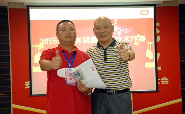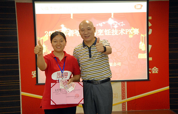 面点团队冠军:第五团队(赵艳、金凤娟、侍开霞);热菜团队冠军:第五团队(张勇、焦守锋、段其海);理论考试冠军:区域经理洪家玉;面点冠军:金凤娟(核桃酥),面点亚军:盛彩云(双色凉糕)、李秀华(椰蓉紫薯糕);面点季军:王雪(驴打滚)、赵艳(花蝴蝶)、李玉珍(翡翠烧卖);热菜冠军:焦守锋(葡萄鱼);热菜亚军:董世彬(凤阳豆府)、谷三收(李府红烧肉);热菜季军:董长河(凤阳豆腐)、金龙(双椒鱼块)、张勇(李府红烧肉)。