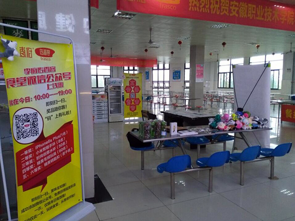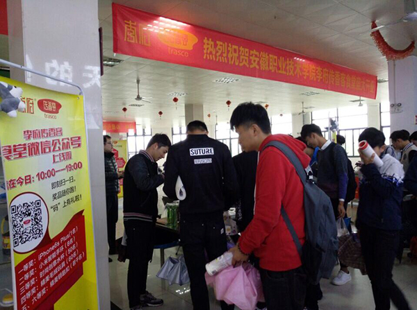 2016年10月27日,李府集团举办的“优质服务月”为主题的微信推广活动在安徽职业技术学院李府传香客食堂举行,本次活动得到了安徽职业技术学院后勤领导的大力支持,集团副总经理尹正会、总经办副主任梁灿携网络部、办公室等工作人员前往现场指导工作,确保活动顺利进行并取得实效。据后台数据显示,当天安徽职业技术学院有超过1200名师生参与微信平台“幸运大转盘”活动,现场发放两百份礼品。