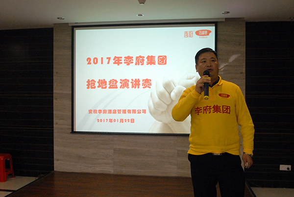 随后,我集团下辖各传香客食堂项目负责人“抢地盘演讲赛”伴随着凤中团队抓钱舞拉开帷幕。本次演讲赛秉承公开、公平、公正的原则,各传香客食堂经理上台抽签决定先后。演讲过程中,各参赛者慷慨激昂,纷纷阐述2016年的经营成果及对2017年的经营设想,最后各传香客食堂经理相继获得各自食堂的经营权。同时,本次传香客财贸食堂采取了“挂桃子”的方式对全体李府家人开放,最终被区域经理宣以顺凭借现场良好的发挥、全面的经营计划和对财贸食堂深厚的感情摘得了“桃子”。集团副总经理、落地委领袖张超对各传香客食堂进行点评、加持并就集团总部2016年自转整体成果及2017年的总体方向做出汇报及梳理。