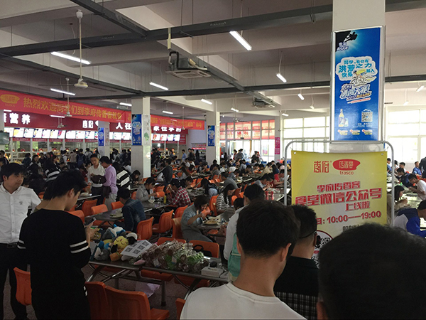 2017年04月18日上午10时许,以“优质服务月”为主题的李府传香客微信公众号推广活动在滁州学院蔚然食堂拉开帷幕。本次活动得到了滁州学院后勤领导的大力支持,集团副总经理张超、总经办副主任梁灿携事业部、网络部、办公室等工作人员前往现场指导工作,保证活动顺利进行并取得实效。据后台数据统计,当天有超过1200名滁州学院师生参与了集团微信公众号“幸运大转盘”活动。