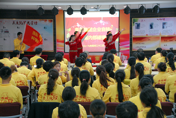 会议伊始,集团下辖传香客科学岛团队为李府家人们带来热情洋溢的团队展示“撸起袖子加油干”,赢得了现场雷鸣般的掌声和欢呼声。紧接着17家自转食堂落地委代表逐个上台以PPT的形式向大家展示了1-3月份自转落地成果,各自转食堂在食堂经理与落地委成员的共同努力下,从根本上改变员工思维、践行自转理念、采用承包、对赌等机制,有针对性的更新产品、调整售卖时间、提高服务水平,使各运营点的营业额都有大幅提高,落地成果斐然。最终,经过评委现场打分,传香客安医大团队再次斩获“最佳PPT奖”、传香客科学岛团队获得“最佳开源节流奖”、传香客财贸团队获得“最佳进步奖”。