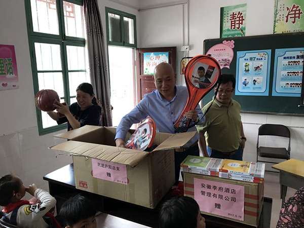 2017年5月19日上午,由民进庐阳区总支、李府集团牵头的围绕“迎六一,爱心彩虹,牵手未来”为主题的爱心捐赠小组前往黟县西递中心小学开展了一场精准扶贫爱心捐赠活动。李府集团董事长辛国芳先生做为合肥市政协委员、合肥市庐阳区政协委员、合肥民主庐阳总支委员参与本次社会公益活动,向留守儿童捐献了生活学习用品。