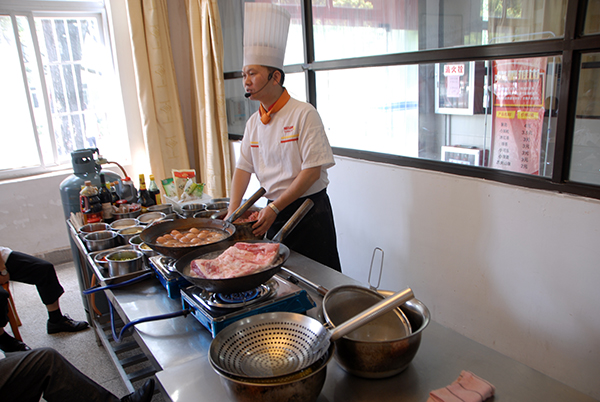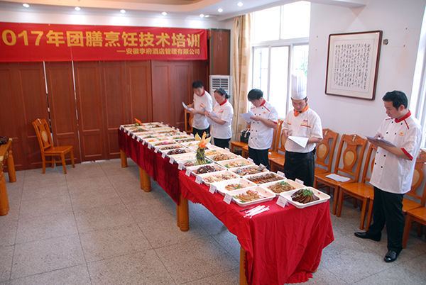 在科学岛食堂,技术部总监王士朝为学员们示范各类新菜品的制作方法和烹饪技巧讲解,大家摩拳擦掌、跃跃欲试。在王总监的实例讲解和示范后,由学员们自由分组现场进行新菜品的烹饪PK,由现场评委进行评比,最终陈玉春、洪家玉、宣以顺、李泽海组成的四人小组获得团体第一,培训成果显著。