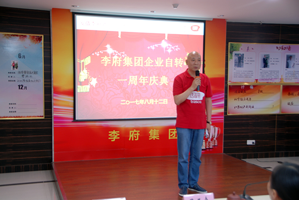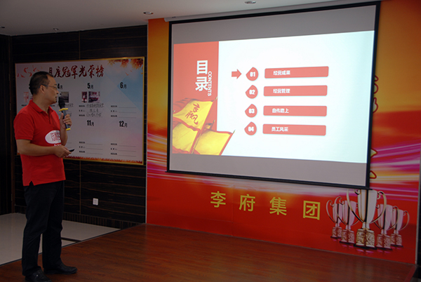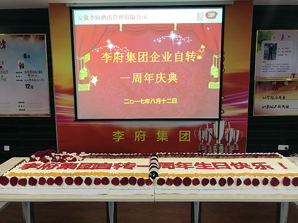 隆重的落地委换届仪式后,迎来企业自转一周年庆祝环节,集团为全体参会人员准备了巨大的生日蛋糕,由辛董和朱总携手给大家分蛋糕,这就像企业自转的分红一样,让每一位李府家人品尝到自转的成果。庆祝环节后,进入李府家人翘首以盼的5-6月份分红大会时间。各自转食堂经理带领其团队上台领奖,本次分红是各自转食堂5-6月份经营成果的回报。各团队纷纷表达对大爱的辛董感恩之情,并承诺竭尽全力,达成使命,在做好食品安全的基础上,进一步提高经营业绩。