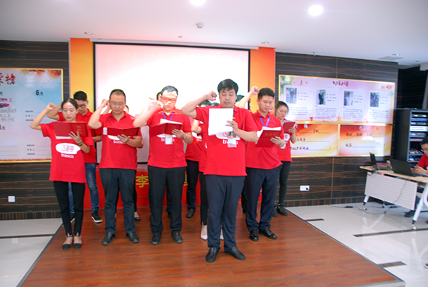 本着“自愿加入、无偿奉献”的原则,总经理秘书兼总经办副主任梁灿、合肥学院马飞光荣的加入集团总部落地委。同时,落地委领袖、副领袖、秘书长继续由张超、王士朝、尹正会担任。辛董为第三届总部落地委成员颁发任命书并授旗、授章,落地委在领袖张超的带领下庄严宣誓。
