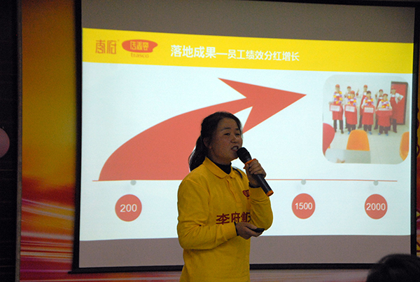 颁奖与忏悔完结后,传香客安科食堂的家人为与会人员带来团队展示,获得阵阵掌声。随后,我集团下辖各传香客食堂演讲代表逐个上台以PPT的形式向大家展示其所在传香客食堂的经营和落地成果。经过评委现场打分,传香客安医大团队获得“最佳PPT奖”、传香客合肥七中团队获得“最佳开源节流奖”、传香客安理工团队获得“最佳进步奖”。集团副总经理张超就各传香客食堂的PPT演讲进行点评及企业文化落地的宣讲,与会人员受益匪浅。