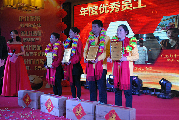随后传香客安农大食堂团队、凤中食堂团队为各位与会者带来舞蹈《相信自己》、《鬼步舞》,现场掌声一片,其乐融融。立足于表彰先进,激励员工,集团对2017年度集团优秀员工、优秀风味班组、优秀管理者、年度六T综合排行榜前三名、年度经理绩效考核评分综合排名第一名、集团荣誉功勋员工逐一进行表彰,各位获奖人员纷纷上台领奖,并发表感言。