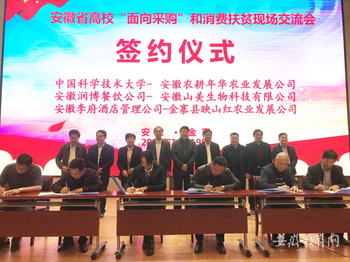 10月19日,省教育厅在金寨县召开“面向采购”和消费扶贫现场交流会议。省教育厅副厅长解平出席会议,11所高校的分管领导、学校工会组织及后勤管理部门负责同志,部分从事高校餐饮和物业服务的企业负责同志,以及金寨县有关部门、有关乡镇和部分农业企业代表参加会议。我集团董事长辛董作为高校餐饮企业负责人参加本次会议。