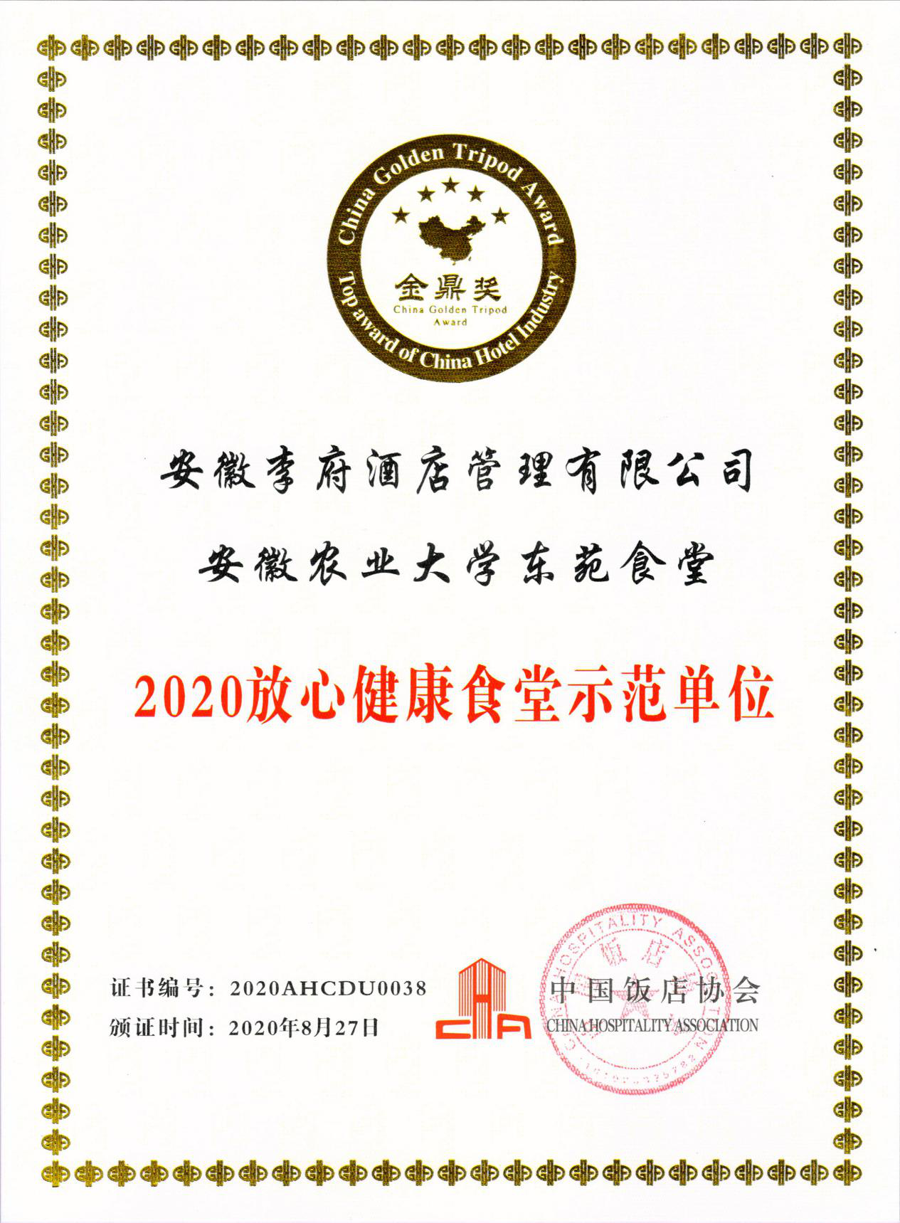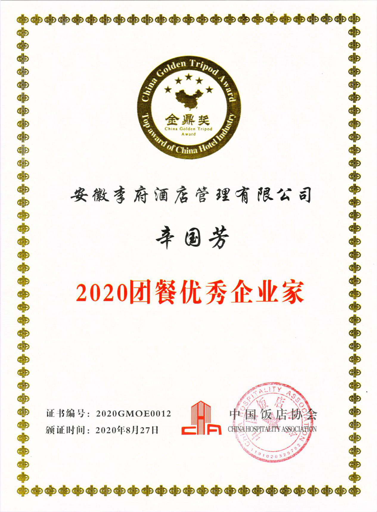 2020年8月27日,由中国饭店协会主办,中国饭店协会团餐专业委员会承办的首届中国品牌大会暨2020团餐振兴大会在上海隆重举行,本次大会以“新起点、新形势、新未来”为主题。大会参照食堂设备设施条件、菜品质量、食品安全,环境卫生等多维度进行评审,我集团董事长辛董荣获“2020团餐优秀企业家”荣誉称号;集团下辖传香客安徽农业大学东苑食堂荣获“2020放心健康食堂示范单位”荣誉称号。