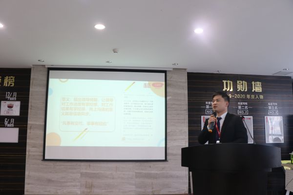 会议在主持人开场致辞及全体人员合唱《团结就是力量》歌曲中拉开帷幕。会上集团各部门负责人就本部门4月份的工作重点进行布置。财务部副经理张跃就集团下辖各传香客食堂2020年12月份及2021年3月份经营完成情况进行数据分析,并请所有食堂经理登台就本食堂3月份的同比和环比数据进行深入分析总结。运营管理部经理段鲁坤对各食堂3月份6T检查情况和第三方食安监管公司的检查结果进行了通报,请两期评比考核第一名的经理上台分享现场管理的经验和两期评比考核最后一名的经理上台做深刻检讨,并请食堂经理分别登台阐述本食堂根据检查结果的具体整改措施和完成情况。副总经理张超公布了3月份食堂的“五星排行榜”,并针对目前各传香客食堂整体运营工作深入点评、剖析,同时对4月份工作重点、工作目标进行相应的布置。总经办主任崔君秋宣读了集团下发的红头文件,并将总经办的布置与要求向与会人员进行了通报。副总经理尹正会公布3月份人力资源部对各传香客食堂经理的考核结果,公布3月份各食堂各岗位人员的人均产值,发布《食堂员工绩效奖金管理办法(讨论稿)》,并对3月份考核优秀的彭良胜经理、宣以顺经理进行了表彰颁奖,两位优秀经理共同登台真诚感谢集团的大力栽培和支持,并就各自如何立足本职岗位把工作在做好的基础上做出色进行了分享。