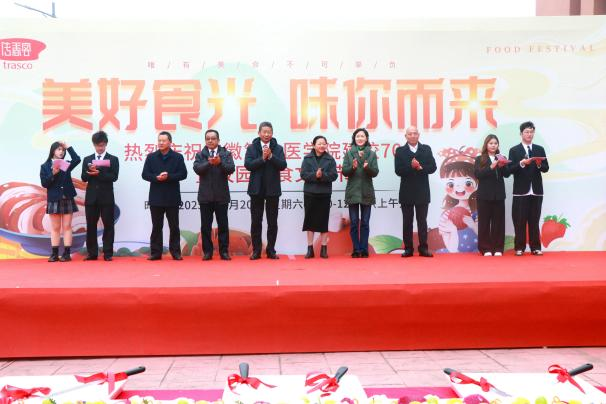 2025年12月20日上午,安徽第二医学院新桥校区食堂门口人头攒动,香气氤氲。由李府集团携手安徽第二医学院总务处联合举办的“安徽第二医学院第一届校园美食文化节”在此隆重启幕。校党委书记姚文兵、校党委副书记王劲松、副校长王润霞、副校长严继贵、校纪委书记潘焱焱及李府集团董事长辛国芳等领导出席活动。