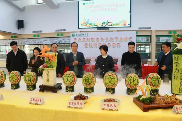 启动仪式上,田仰华副校长、徐先中部长、李群主席、程焱副部长、李峰副部长、丁瑞副部长与孙猛副书记一同移步主展台,共同浇下晶莹剔透的干冰。随着干冰雾气缓缓升腾,现场掌声雷动,气氛瞬间被推向高潮,本次校园美食文化节暨校园厨艺争霸赛也正式宣告启动。
