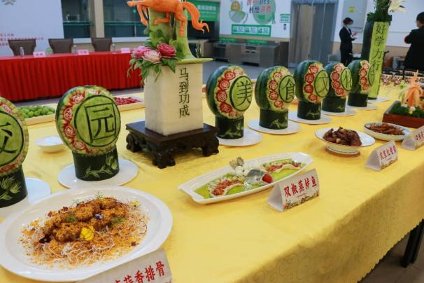 活动现场热闹非凡,美食与竞技的魅力在此尽情绽放。九支师生代表队精神抖擞地亮相赛场,展开了一场兼具观赏性与专业性的厨艺比拼。比赛现场,选手们各显神通,切、炒、蒸、煮等烹饪技艺娴熟精湛。刀工展示环节中,食材在指尖化为均匀的丝、片、丁,令人目不暇接;创意烹饪阶段,选手们巧妙搭配食材、精心把控火候,将对美食的热爱与创新理念融入每一道菜品。